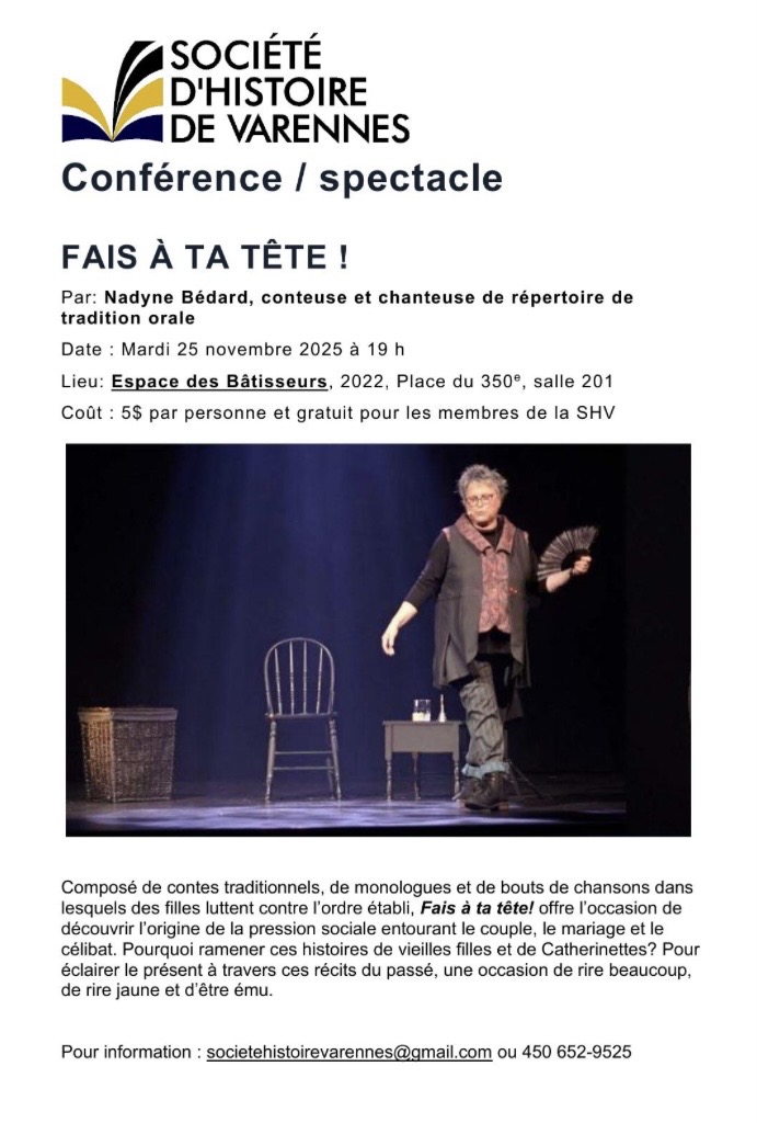 Pour information : societehistoirevarennes@gmail.com ou 450-652-2289