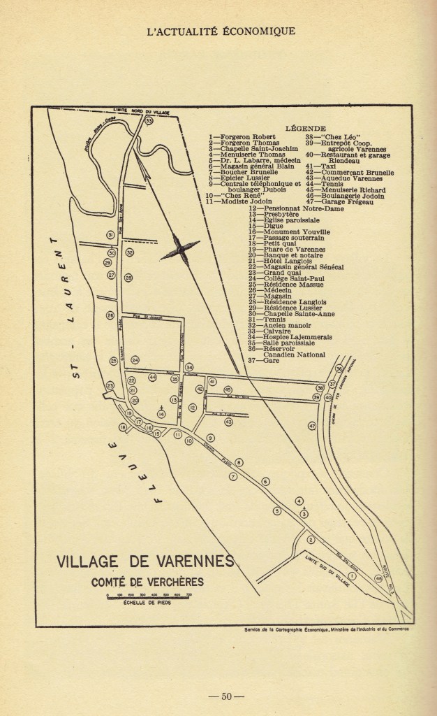 Village de Varennes Comté de Verchères (Service de la Cartographie Économique, Ministère de l’Industrie et du Commerce).