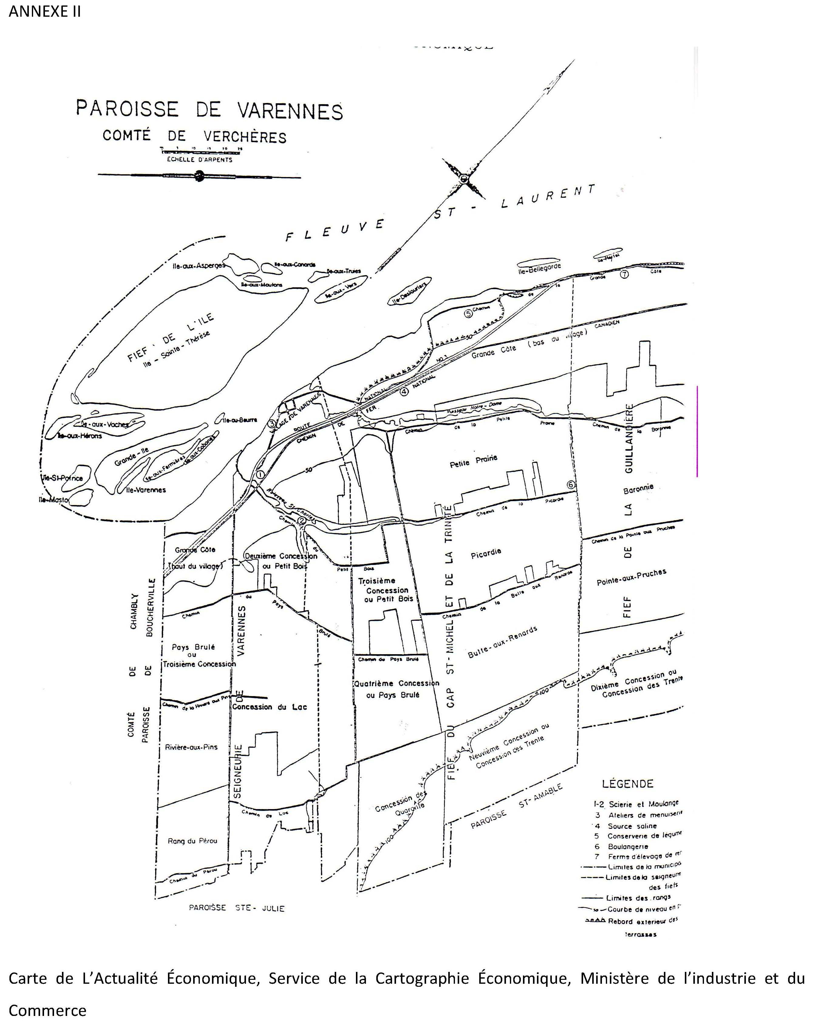 Carte extraite du livre Varennes Monographie géographie, 1944 de Benoit Brouillette (1904-1979), page 52